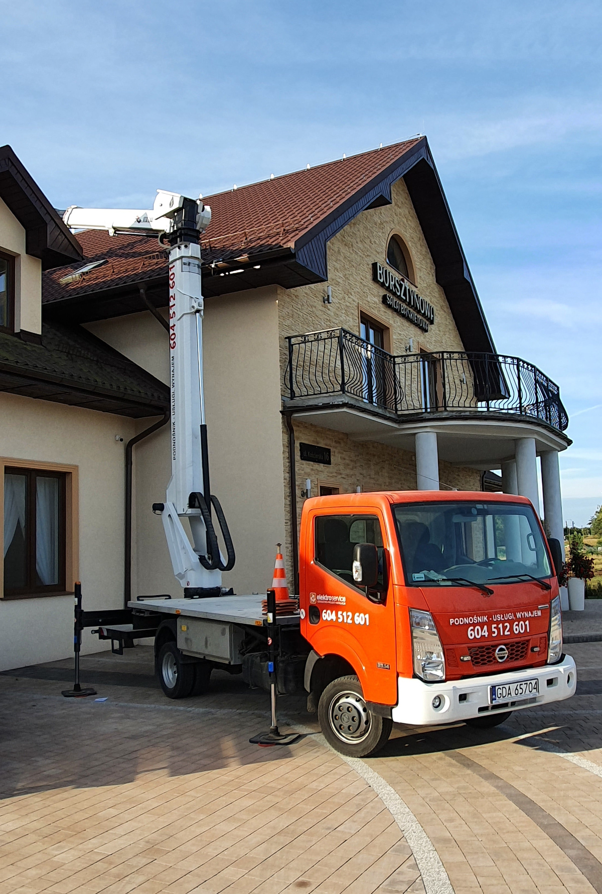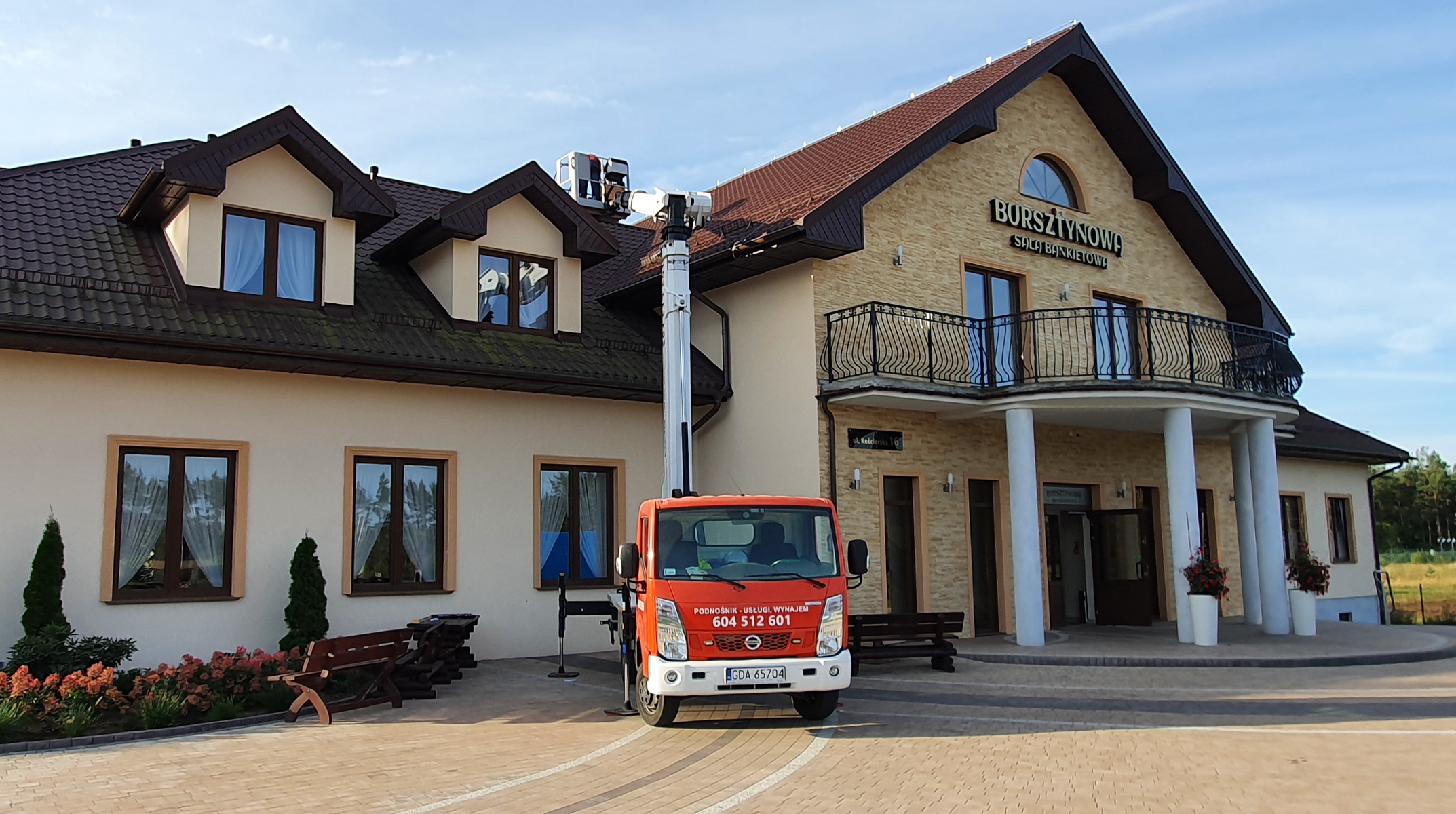 Naprawa dachu budynku, w którym mieści się sala bankietowa nieopodal Gdańska. To kolejny przykład prac wykonanych z powodzeniem przy użyciu naszego podnośnika koszowego. Dzięki temu, że podnośnik koszowy ma szeroki wysięg, prace zostały przeprowadzone sprawnie, bezkolizyjnie dla działalności obiektu. Jeżeli i Ty masz prace na wysokości do zlecenia, zapraszamy do skorzystania z naszych usług!