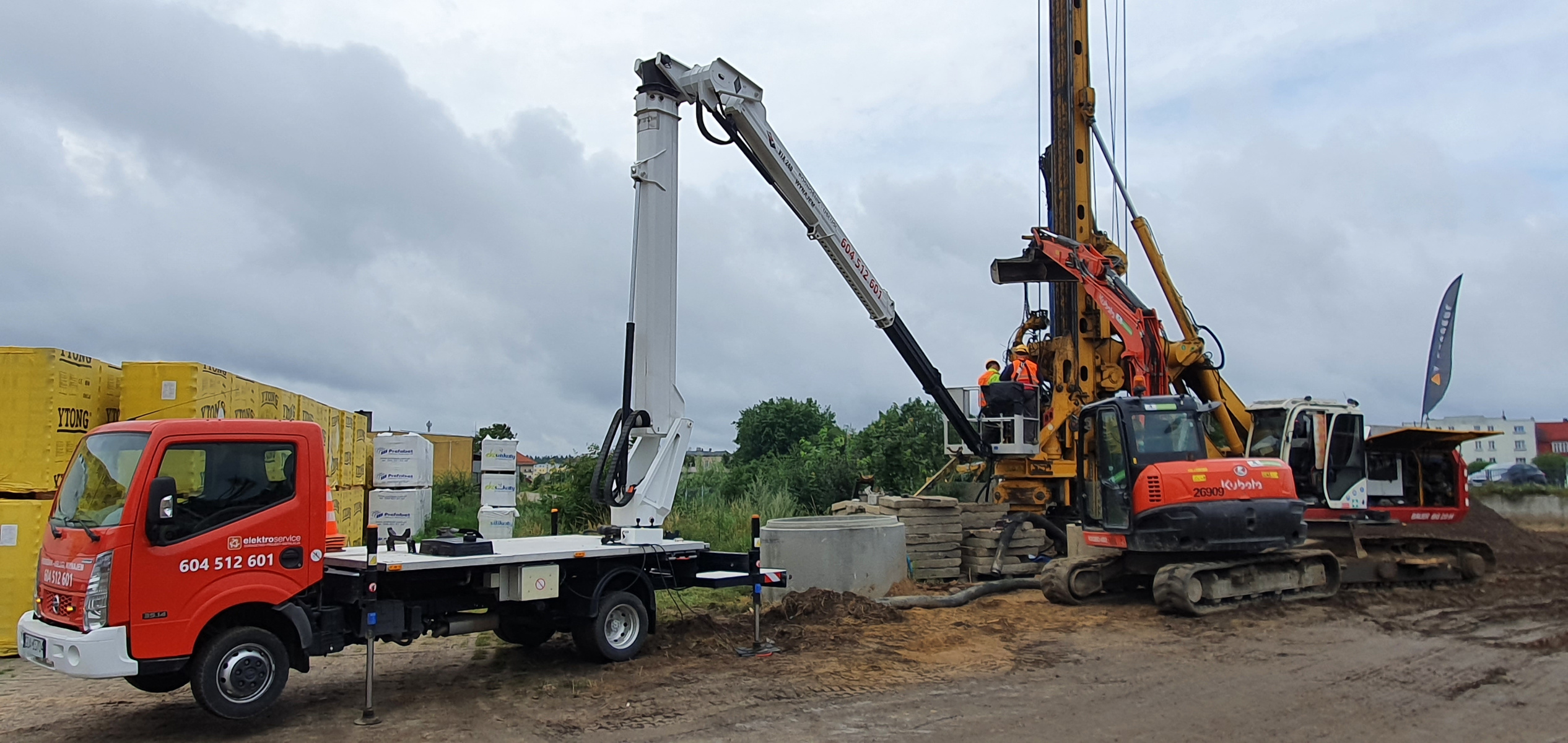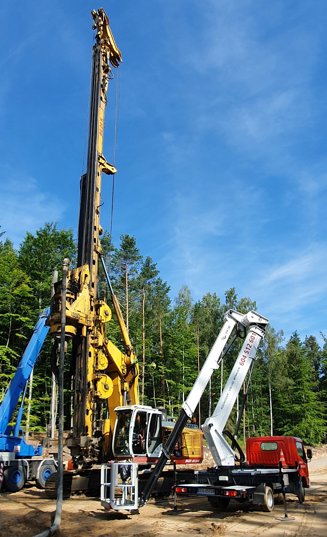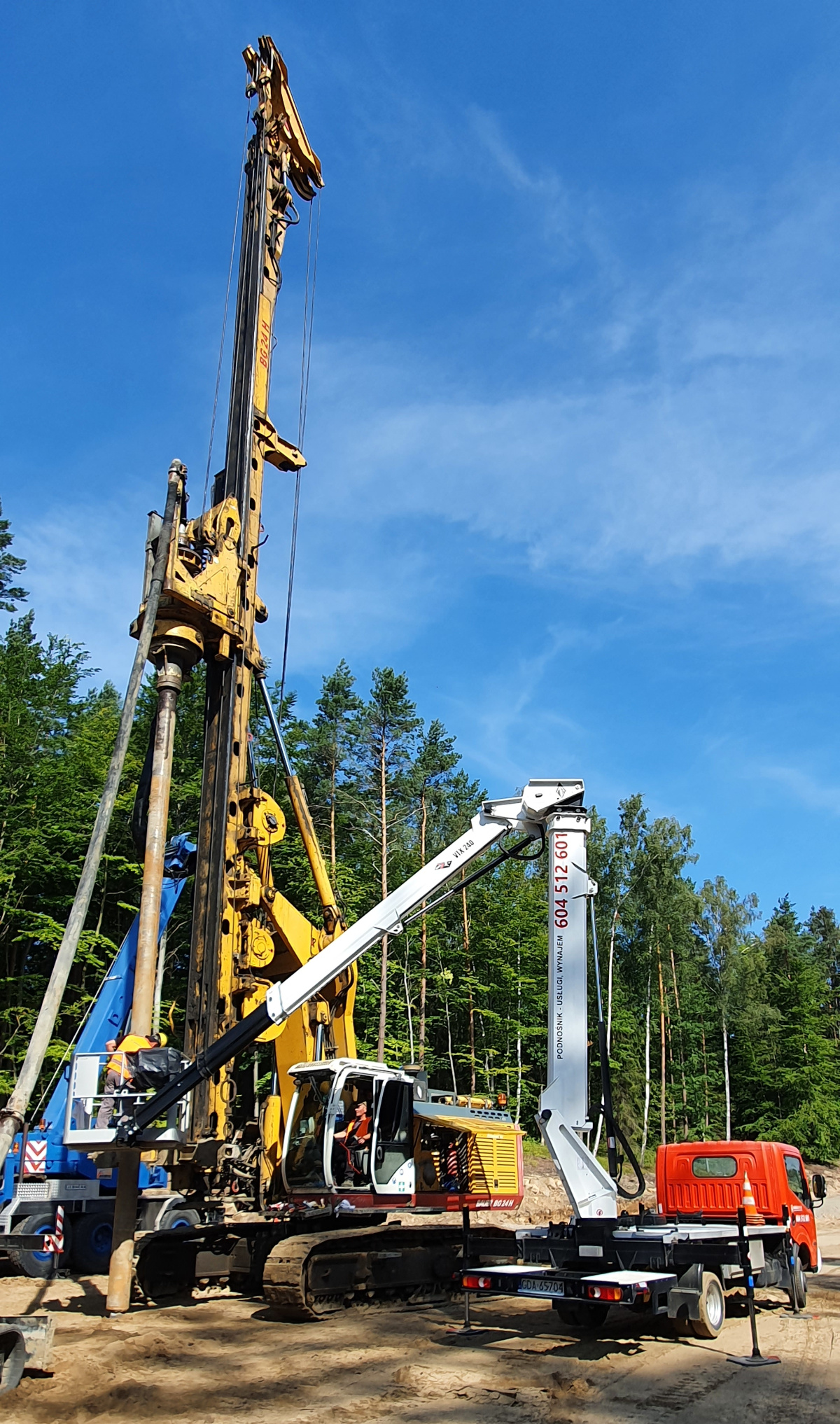 Nasz podnośnik koszowy został wynajęty do naprawy wiertnicy znajdującej się na terenie województwa pomorskiego. Ze względu na specyfikę terenu oraz zakres prac, skorzystanie z innego typu platformy nie wchodziło w grę. Pojemny kosz o odpowiednio dużym udźwigu umożliwił wyniesienie specjalistów i przeprowadzenie niezbędnych prac na wysokości. Prace przebiegły bardzo sprawnie, a maszyna mogła wrócić do działania.